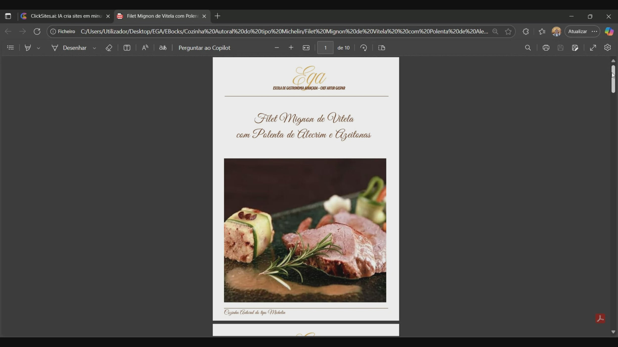 Receita em PDF de Filet Mignon de Vitela com Polenta de Alecrim e Azeitonas